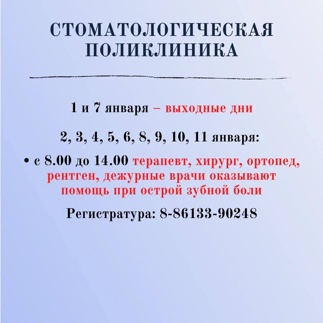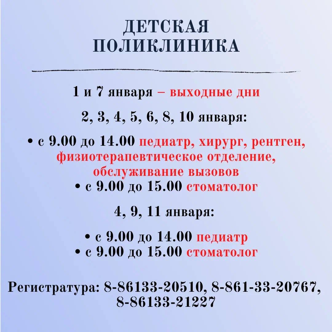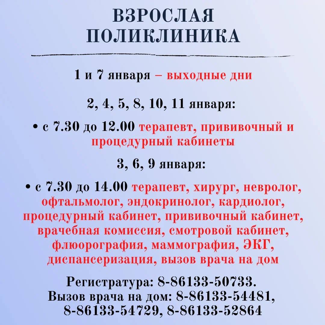 Режим работы поликлиник Городской больницы Анапы в выходные и праздничные дни