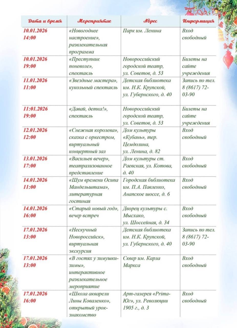 Новогодние каникулы продолжаются и, несмотря на капризы погоды, наполнены самыми разными событиями и мероприятиями, творческими встречами, концертами и мастер-классами.