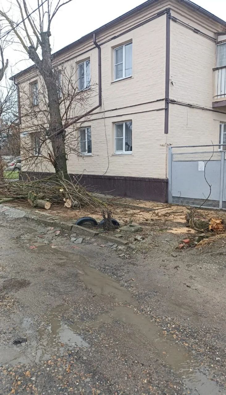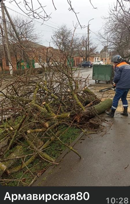 Уборка упавших от сильного ветра веток и деревьев по ул. Армавирской, 80, С.Романа/Б.Хмельницкого