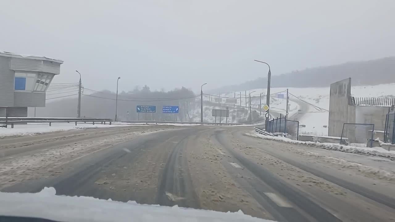 Все из-за сильного снегопада. На дороге «Новороссийск — Керчь» работает спецтехника. В самом городе также расчищают дороги, тротуары и пешеходные зоны.