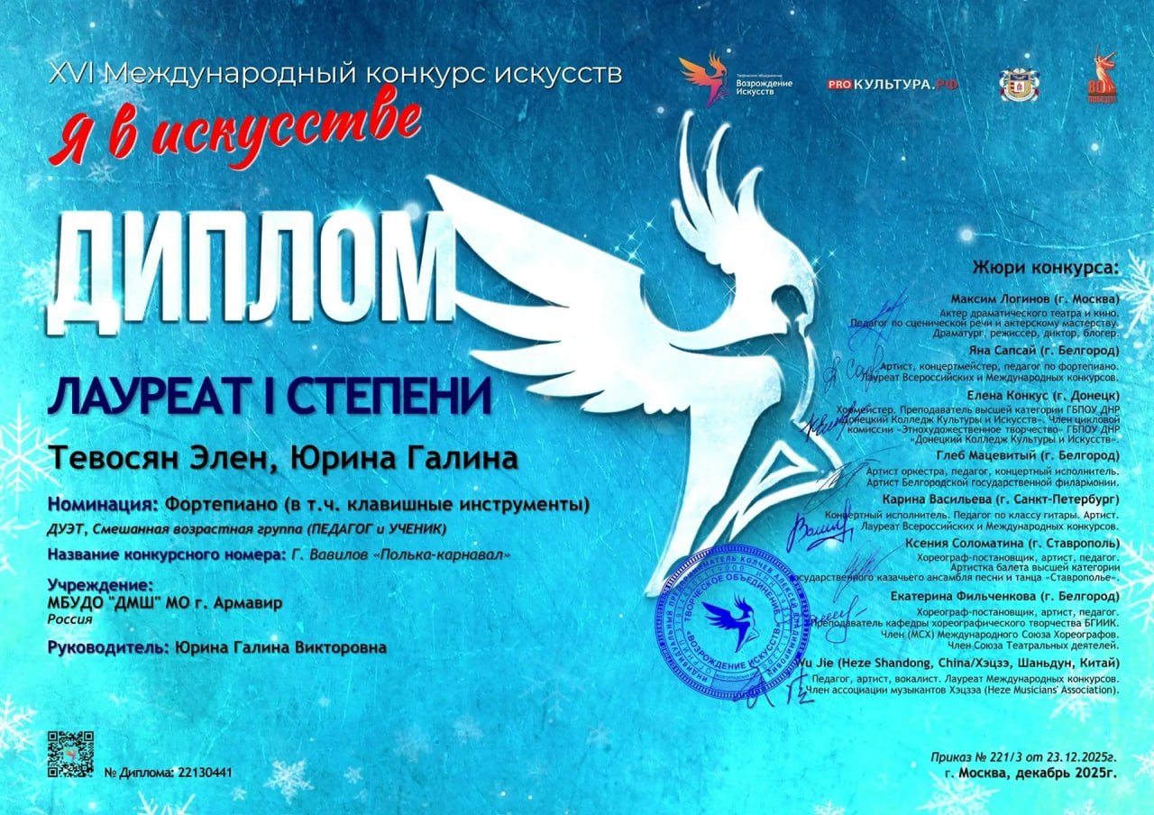 ПРЕДСТАВИТЕЛИ ДЕТСКОЙ МУЗЫКАЛЬНОЙ ШКОЛЫ АРМАВИРА СТАЛИ ПОБЕДИТЕЛЯМИ МЕЖДУНАРОДНОГО КОНКУРСА
