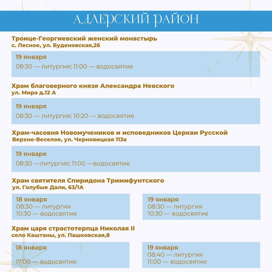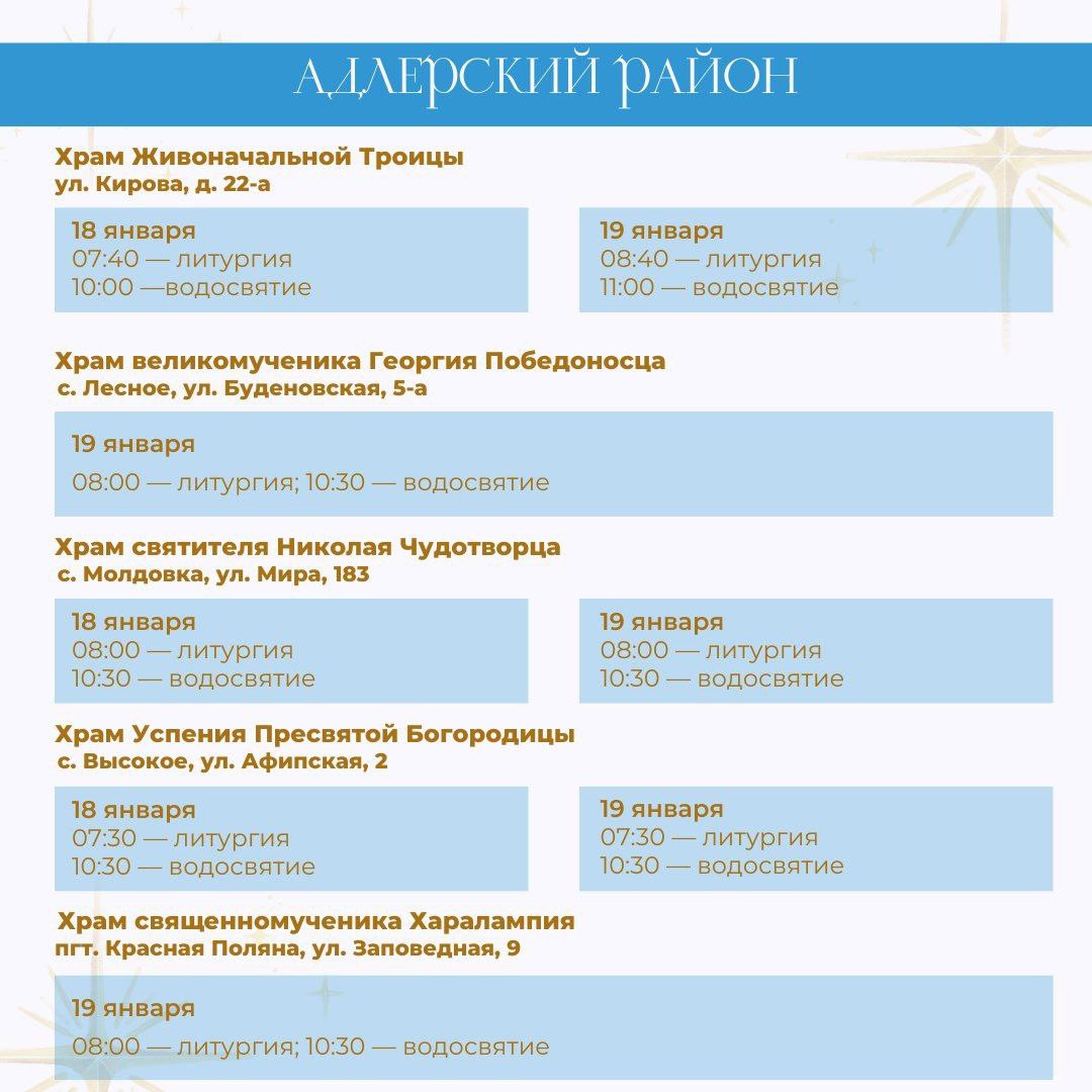 В период празднования Крещения Господня 18 и 19 января в храмах Сочи пройдут праздничные службы и чин водосвятия.