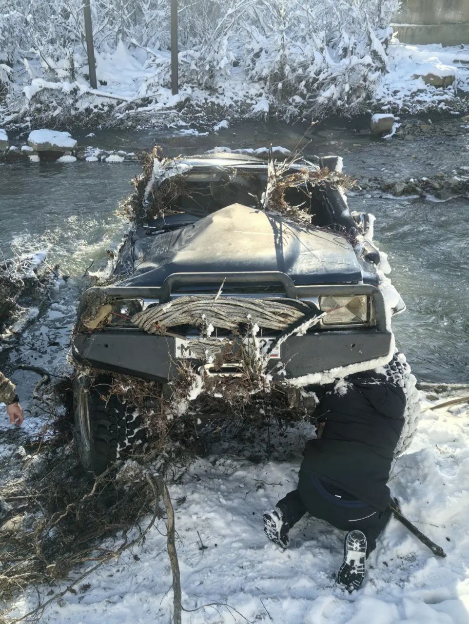 Автомобиль, утонувший в реке, всё-таки достали