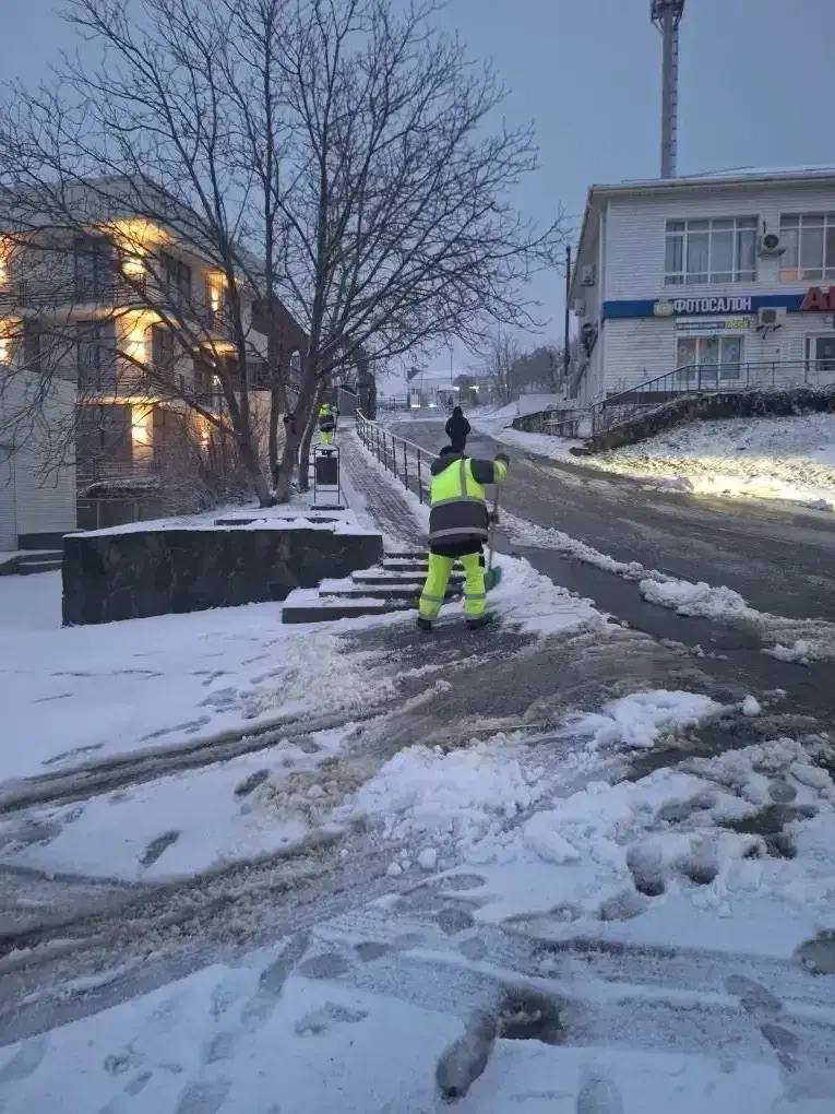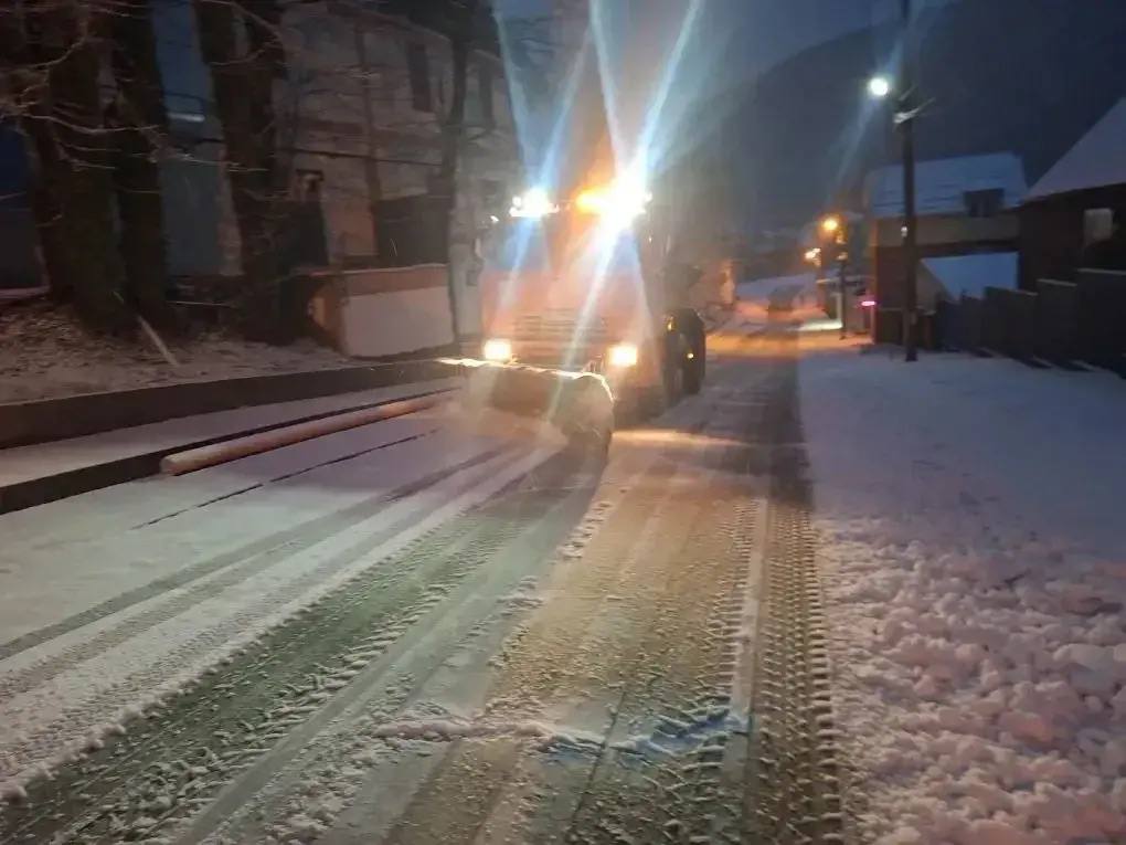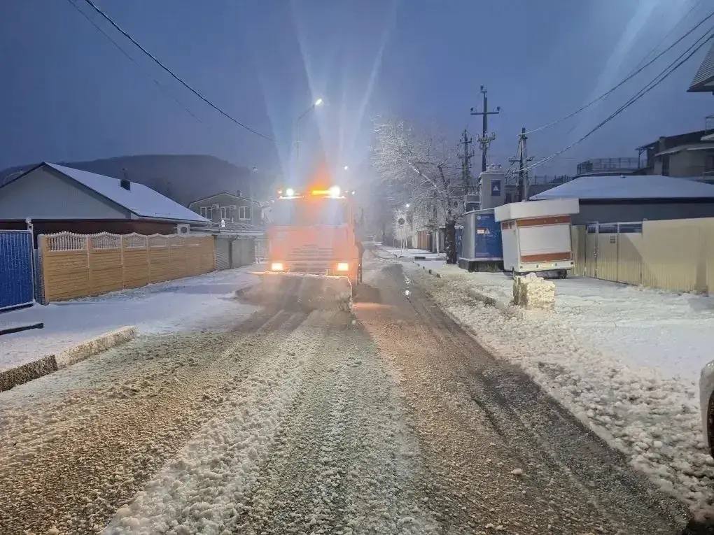 Параллельно ведётся уборка улично-дорожной сети. В работах задействована коммунальная техника муниципального предприятия и федеральных дорожных служб. Всего на расчистке и обработке дорог работает 6 единиц техники, в том числе комбинированные дорожные машины, экскаватор и спецтранспорт. В работах участвуют 24 человека.