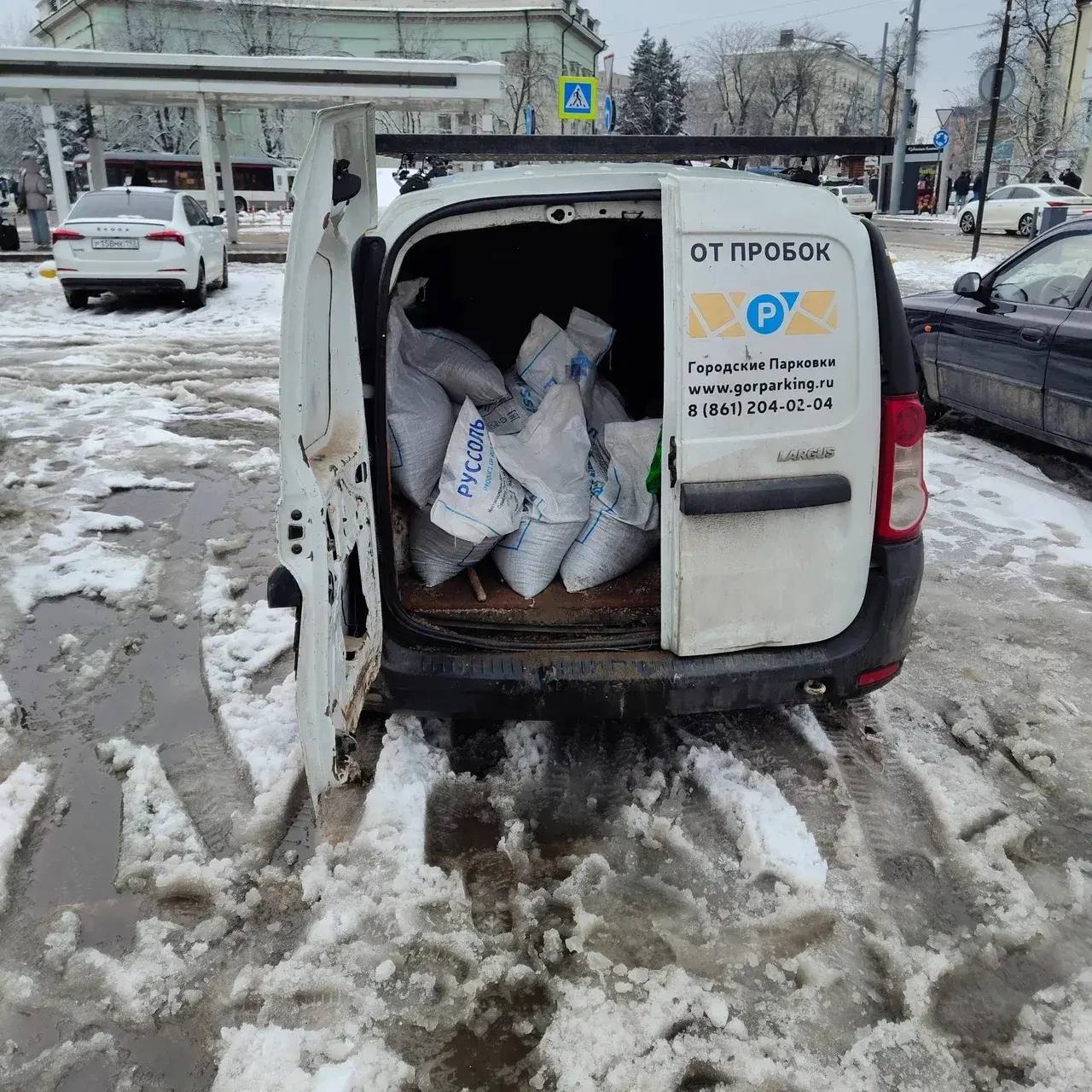 Специалисты ООО «Городские Парковки» проводят работы по очистке парковок от снега и гололёда. Они выполняют расчистку территории и обрабатывают её противогололёдным материалом для обеспечения безопасности автомобилистов и пешеходов.