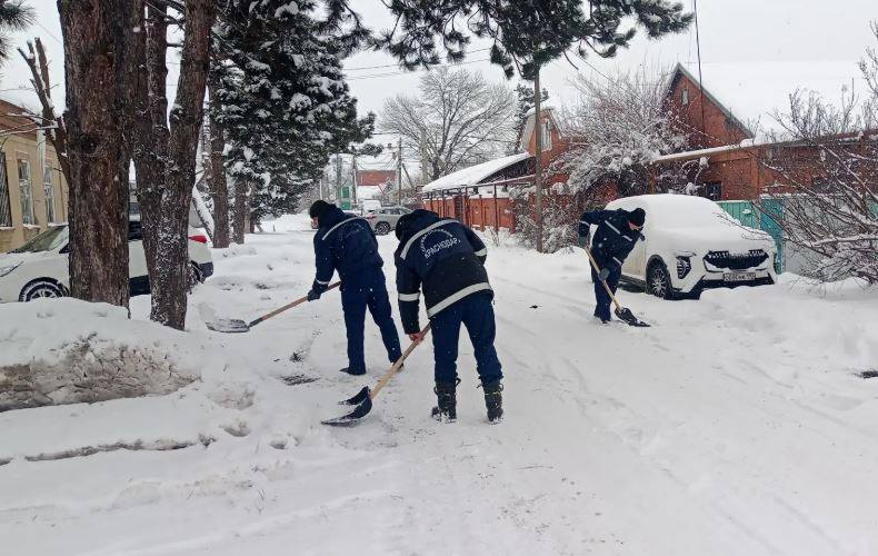 Спасатели города расчистили от снега и льда территорию вблизи пожарных частей и в общественных местах.