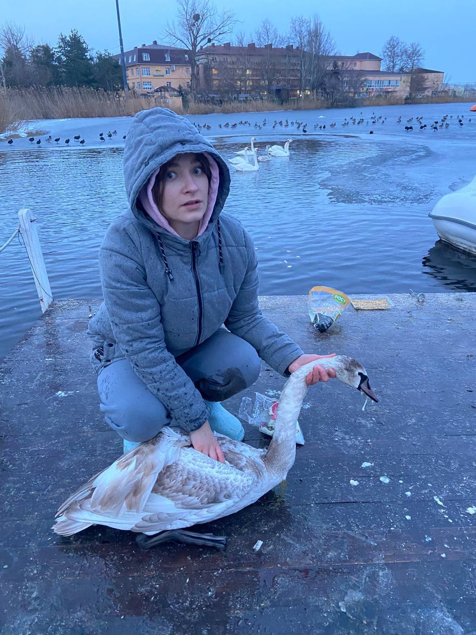 Сотрудникам центра @zhemchujnaya9 пришлось вылавливать лебедя из реки Анапка.