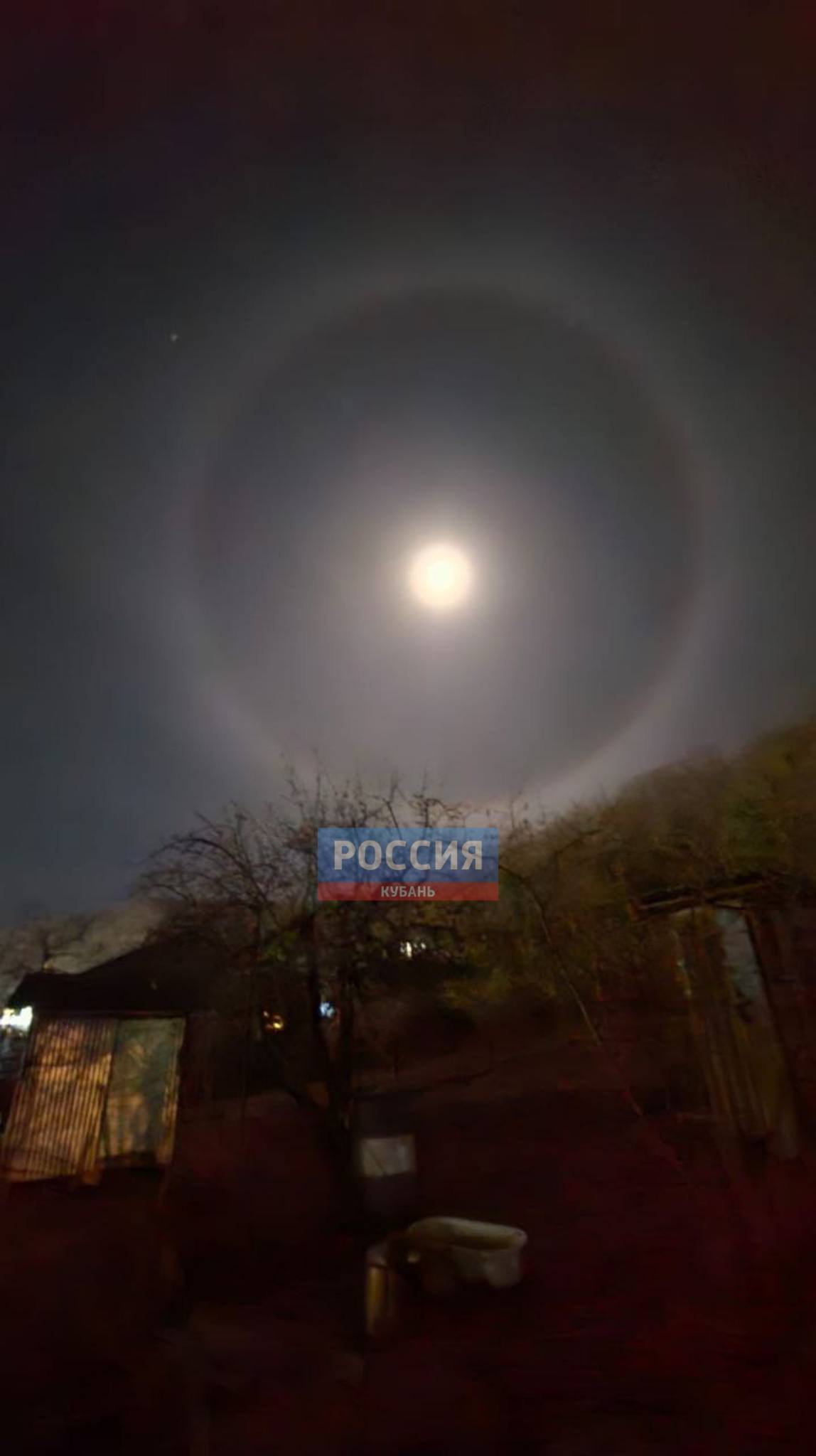 Такое кольцо на небе вокруг луны называется ночным эффектом гало. Световое явление появляется из-за преломления света через ледяные кристаллы в облаках. За фото спасибо нашей подписчице!