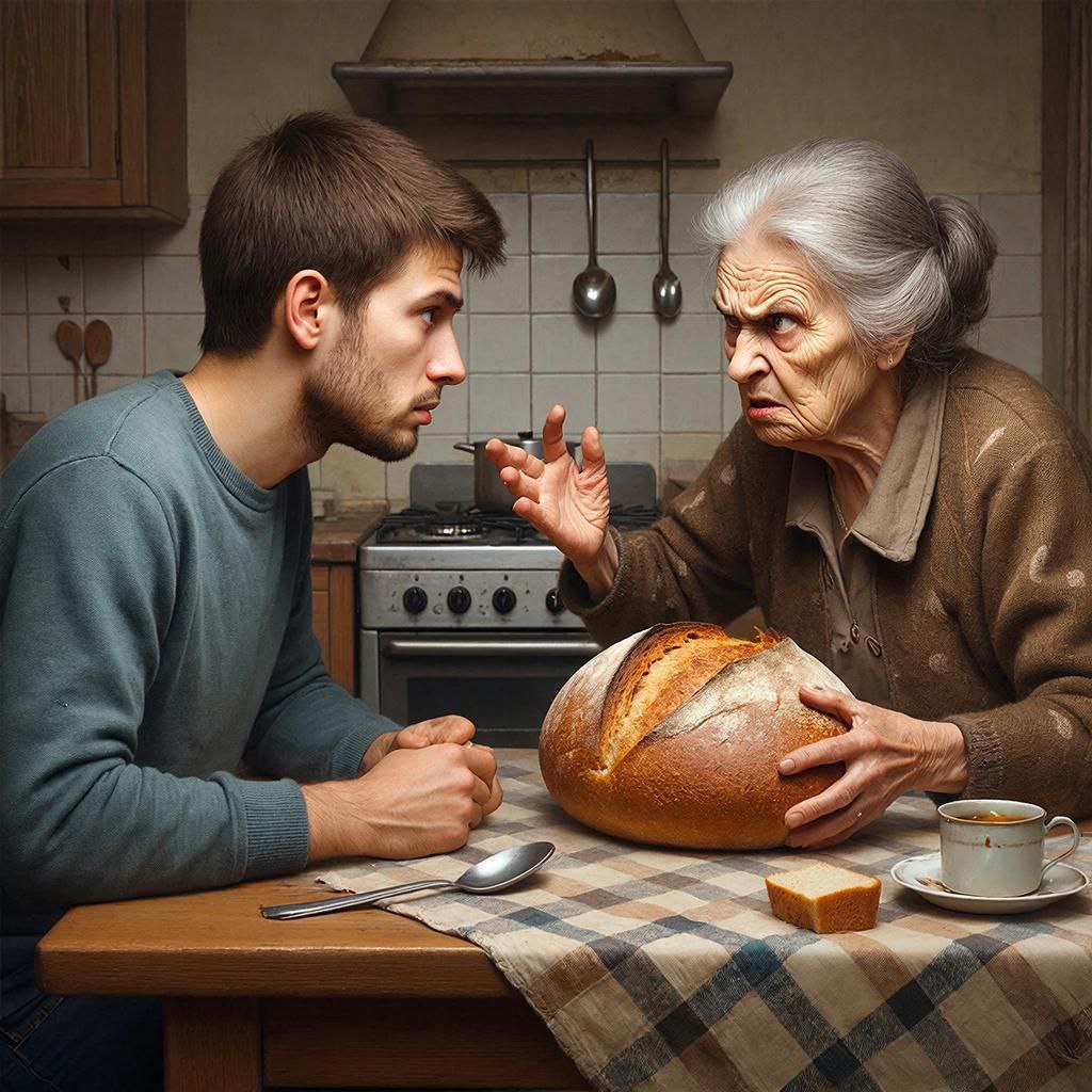 Такое "предательство" возрастная леди стерпеть не смогла. В праведном гневе она вооружилась замороженным хлебом (видимо, стратегический запас на такие случаи) и устроила незадачливому алкогольному пирату показательную порку по физиономии. После чего выдворила его восвояси.