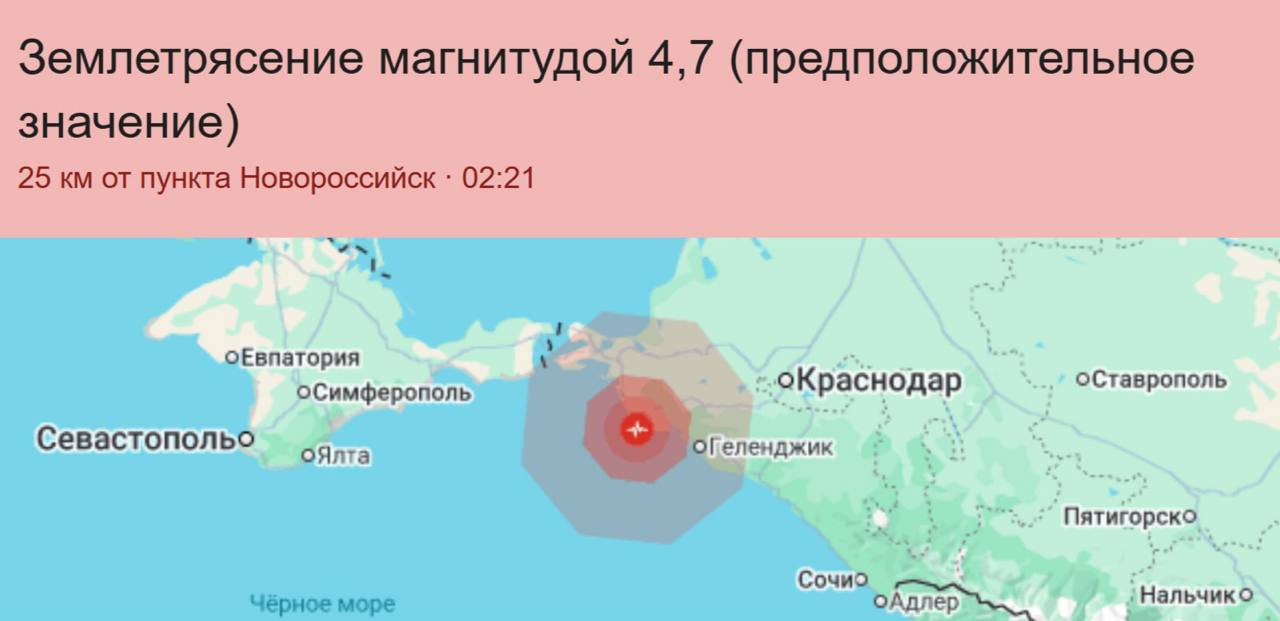 По данным сервисов, отслеживающих сейсмособытия, это было землетрясение магнитудой 4,7 баллов.