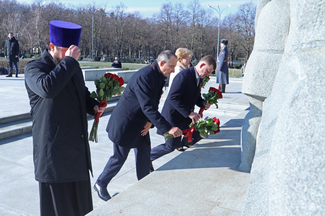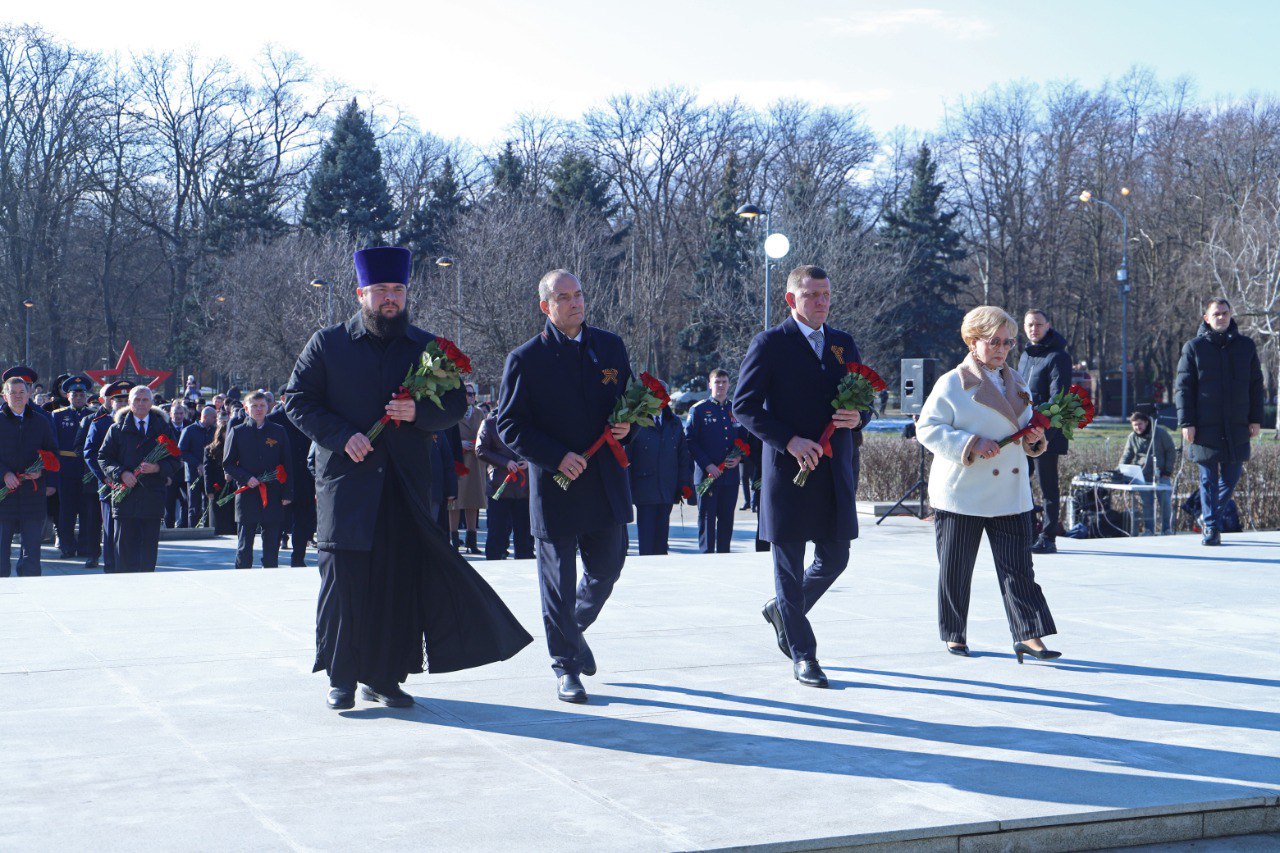 Руководитель ЗСК Юрий Бурлачко, глава краевого центра Евгений Наумов и председатель городской Думы Краснодара Вера Галушко возложили цветы и венки к мемориалу «13-ти тысячам краснодарцев – жертвам фашистского террора» в Чистяковской роще.