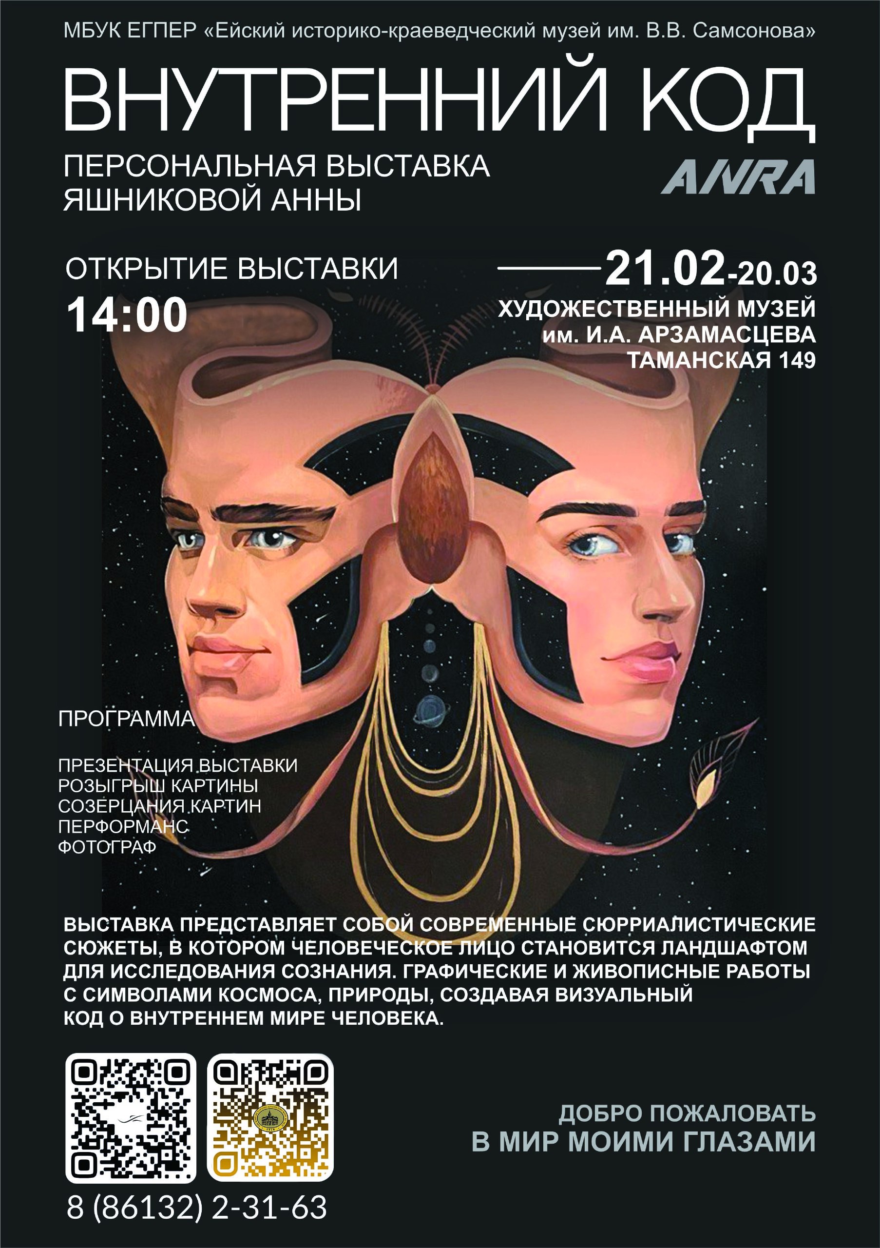 Уважаемые ейчане и гости города, рады сообщить о предстоящем открытии новой выставки в Ейском Художественном музее им. И.А. Арзамасцева.