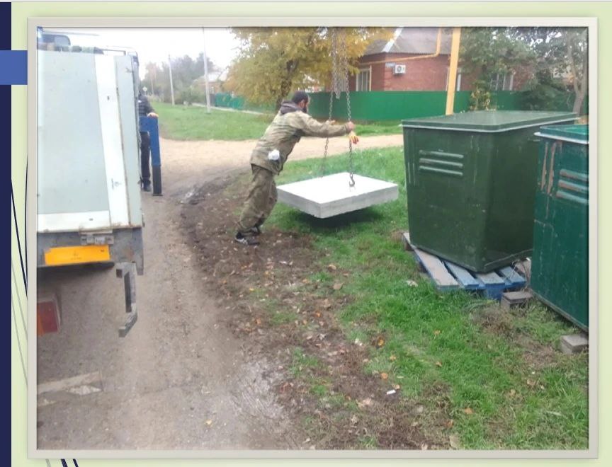 За счет средств районного бюджета в ст. Копанской было установлено 35 контейнеров для накопления ТКО, 15 железобетонных плит под мусорные баки, а по ул. Калинина, 109 – контейнер для крупногабаритных отходов.