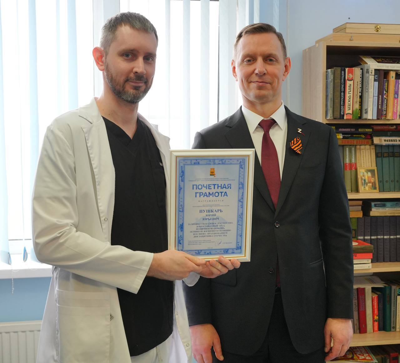 В ходе небольшого торжественного мероприятия Андрей Кравченко вручил почетные грамоты врачам и поблагодарил их за профессионализм: «Результатом сотен проведенных вами сложнейших операций и бессонных ночей стало здоровье наших бойцов, их возможность вернуться к полноценной жизни».