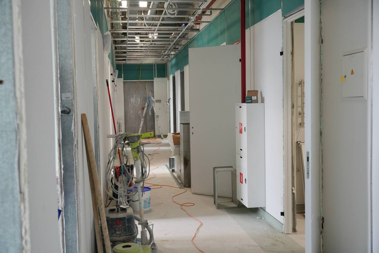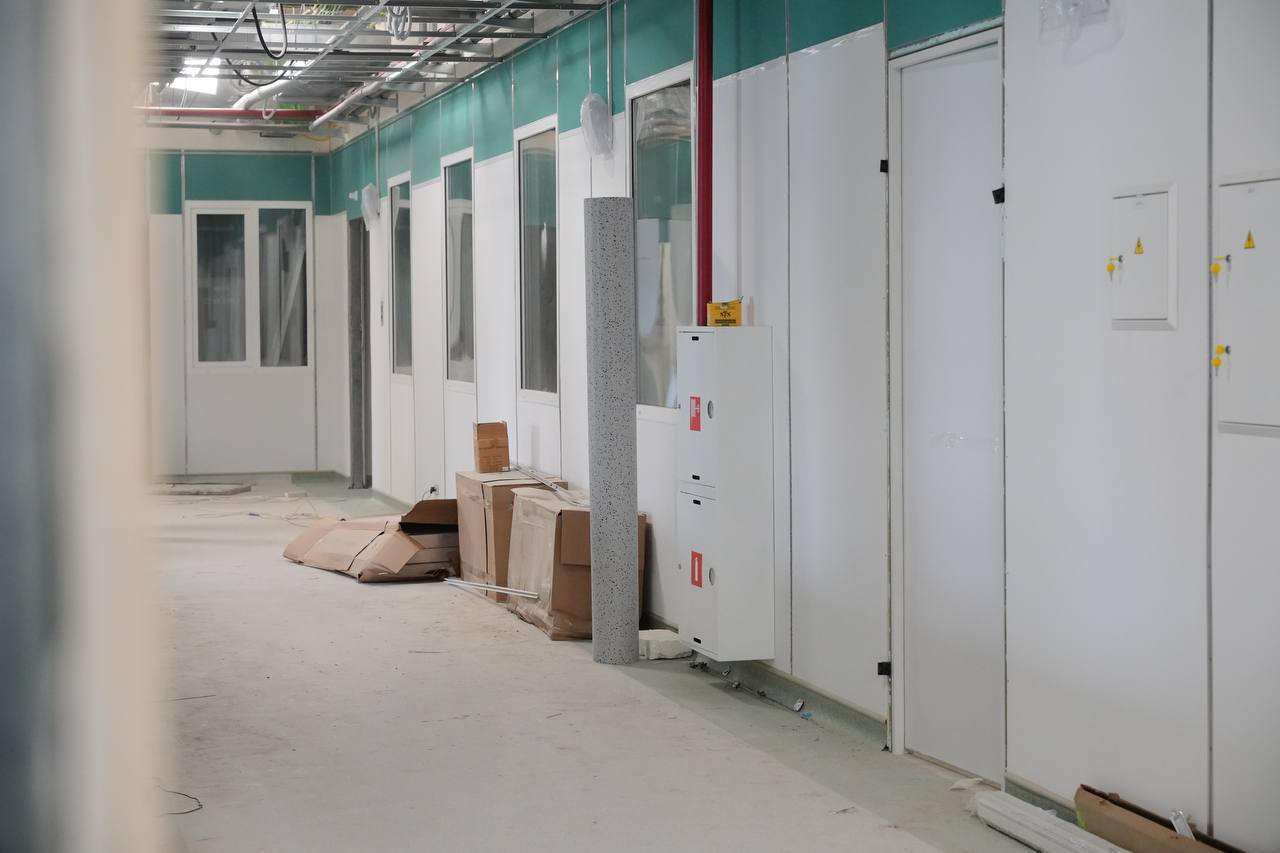Как рассказала Нина Александровна, здесь будет организована работа пяти операционных для всех профилей, в том числе для рентгенохирургических операций на сосудах, сердце и других жизненно важных органах. Пациентов здесь начнут принимать уже в конце марта, а пока идут отделочно-монтажные работы.