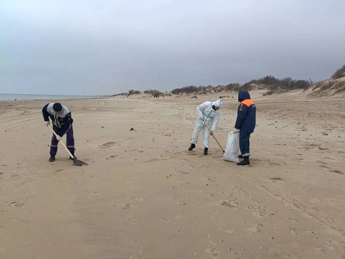 На месте организовали работы по уборке, в течение дня собрали 98 мешков штормового мусора и фрагментов мазута.