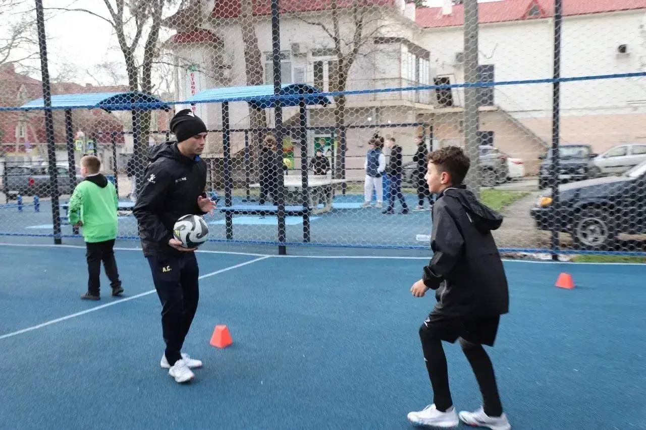 На спортивной площадке в районе улицы Тельмана создали универсальное пространство с игровой и тренировочной зонами. Там есть теннисный стол, рукоход, степ-платформа, тренажёры для пресса и спины, баскетбольные щиты, футбольные ворота, тренажёр на координацию.