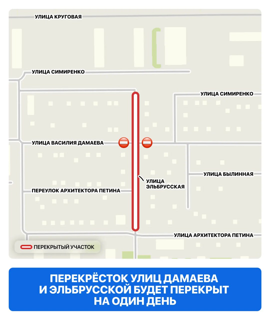 Ограничат движение на пересечении улиц Эльбрусская и Василия Дамаева