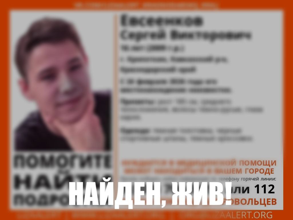 Сегодня поисковый отряд «Юг» сообщил, что юноша вернулся сам.