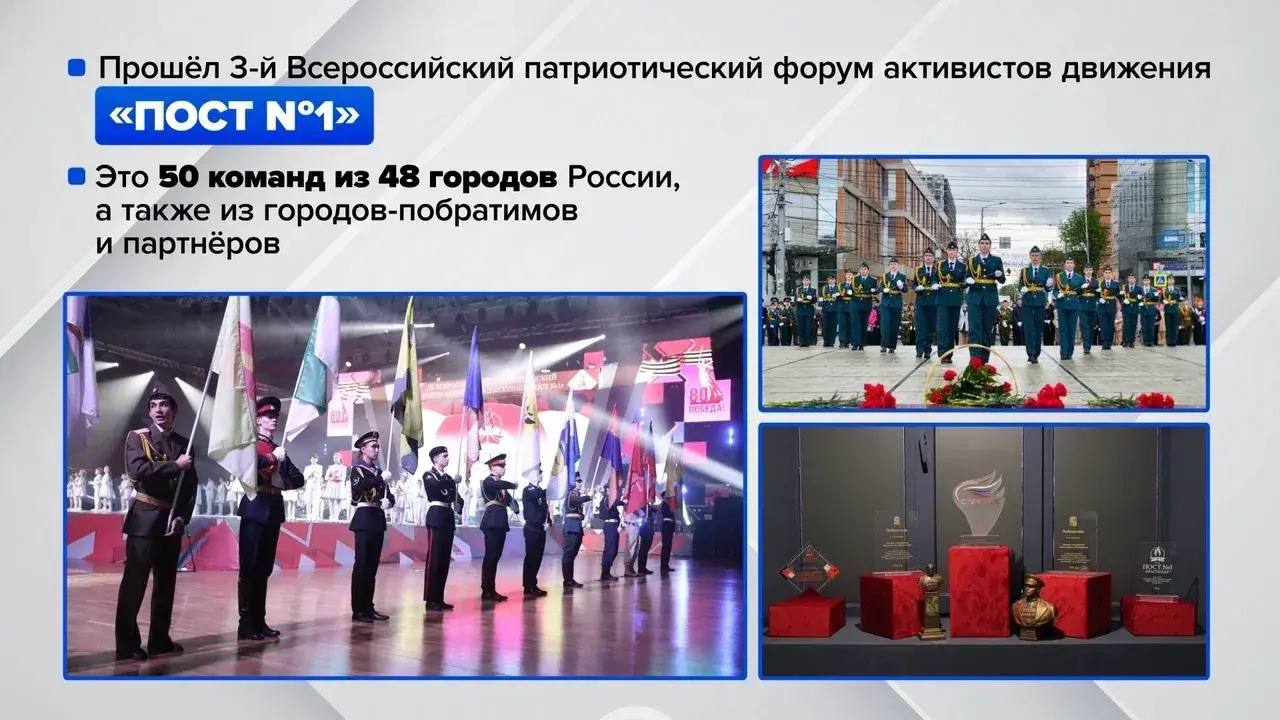 В 2025 году в Краснодаре прошёл 3-й Всероссийский патриотический форум активистов движения «Пост № 1». В нём приняли участие 50 команд из 48 городов России, в том числе из ДНР и ЛНР, Херсонской и Запорожской областей, городов-побратимов и партнёров: Минска и Гродно, Восточного Сараева и Сухума.