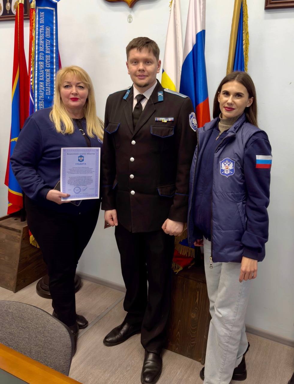 Его участниками стали представители Черноморского казачьего округа: помощник атамана по вопросам работы с молодежью Татьяна Тарасова, первый заместитель атамана, старший воспитатель, педагог дополнительного образования Новороссийского казачьего кадетского корпуса Александр Дуда, директор МБОУ ООШ № 25 города-героя Новороссийск Ольга Кумпан, классный руководитель, педагог дополнительного образования, руководитель музея Новороссийского казачьего кадетского корпуса Наталья Малич.