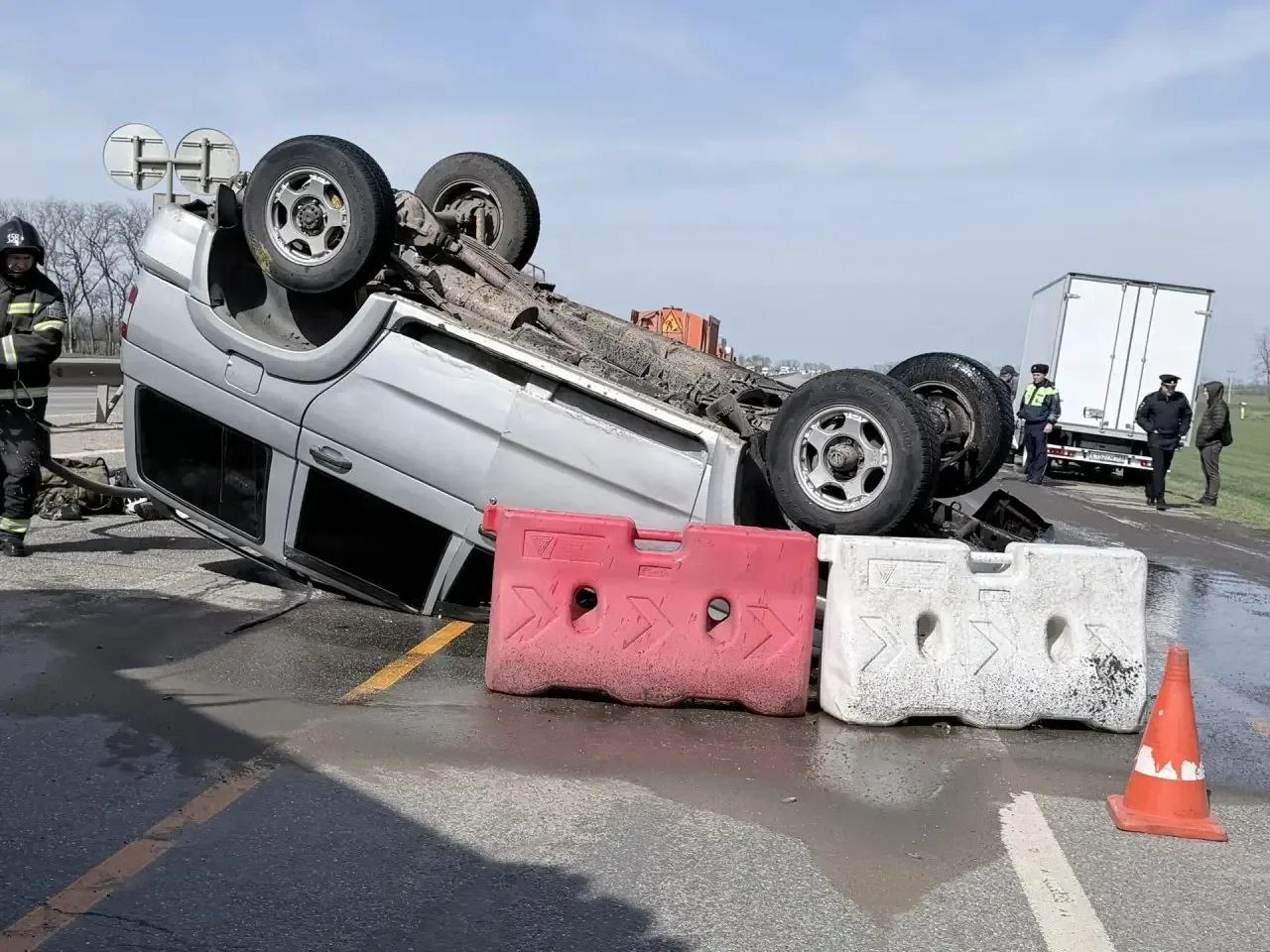 В Гулькевичском районе на федеральной автодороге "Кавказ" 32-летний водитель "УАЗ Патриот" не справился с управлением, наехал на металлический отбойник и опрокинулся на встречную полосу.