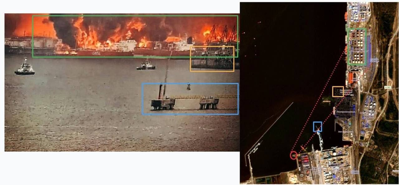 По сообщениям профильных каналов, терминал «Новатэка» выведен из строя полностью: все установки повреждены, а резервуары «Усть-Луга Ойл» горят после нескольких прямых попаданий. Удар пришёлся и по двум танкерам, которые находились под загрузкой.