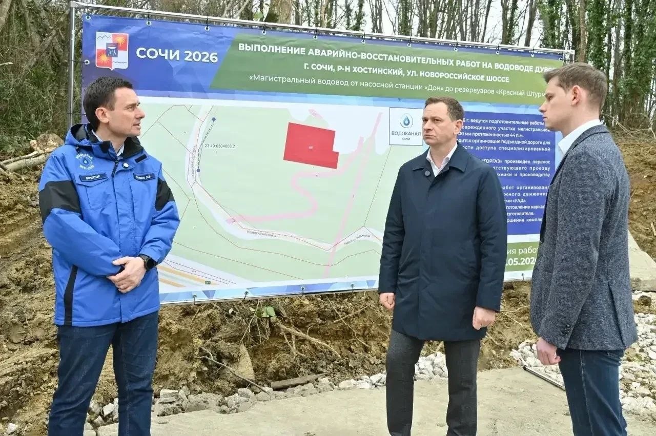 Глава Сочи Андрей Прошунин проинспектировал ход восстановительных работ на магистральном водоводе в Хостинском районе