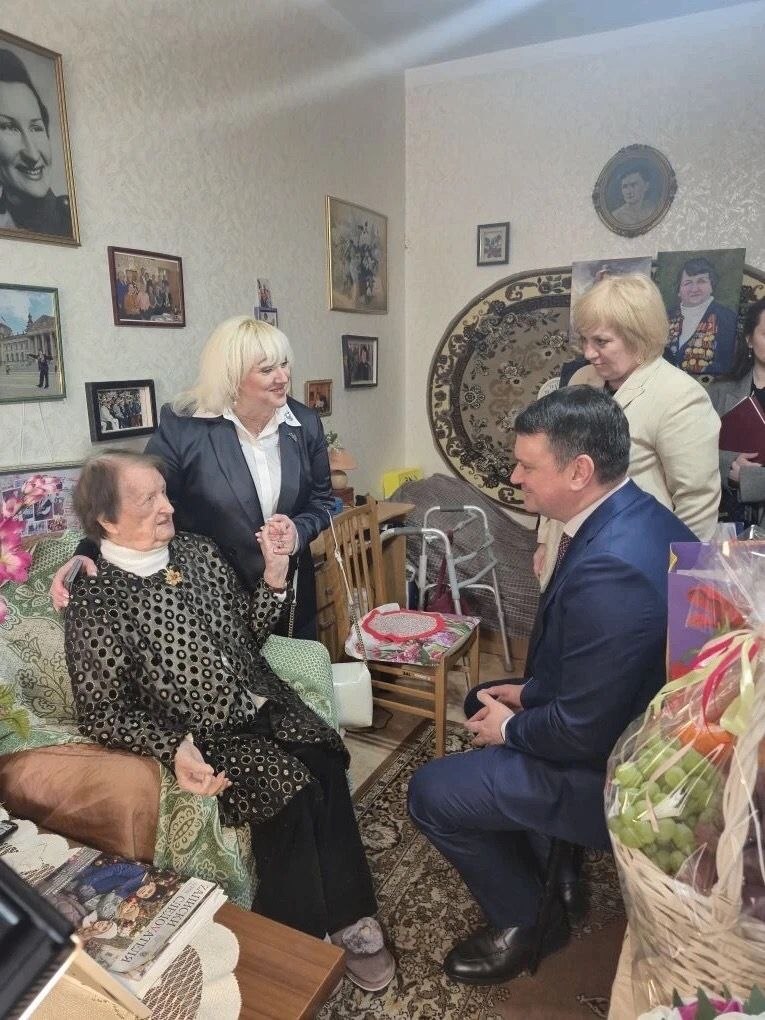 Председатель поздравил 103-летнюю Нину Демешеву – ветерана ВОВ – с приближающимся праздником Победы и 80-летием взятия города-крепости Кенигсберг. Почетная жительница региона рассказала Сергею Чиркову о службе санитарным инструктором на железной дороге, участии в штурме Кенигсберга и о том, как в 1945 году танцевала чечетку на ступенях Рейхстага.