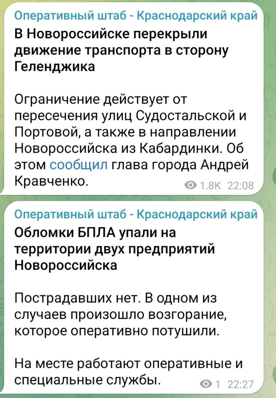 Если точнее, то «Шесхарис» — крупный нефтеналивной комплекс. Кадры указывают, что прилеты были в этом районе, но говорить об этом что-то преждевременно. Администрация региона ничего об атаке в этом кусте не сообщают.БС в TG |...