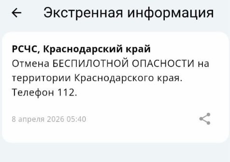 «Беспилотную опасность» отменили на Кубани.