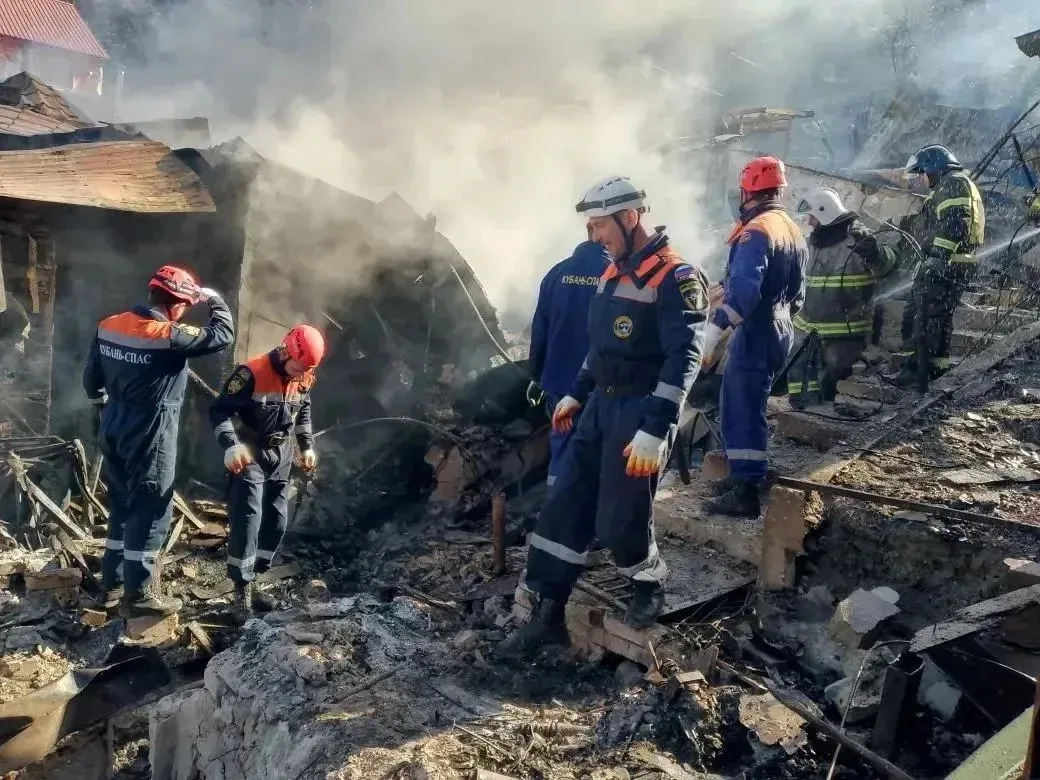 В Туапсе разбирают конструкции частного дома после беспилотного удара ВСУ.
