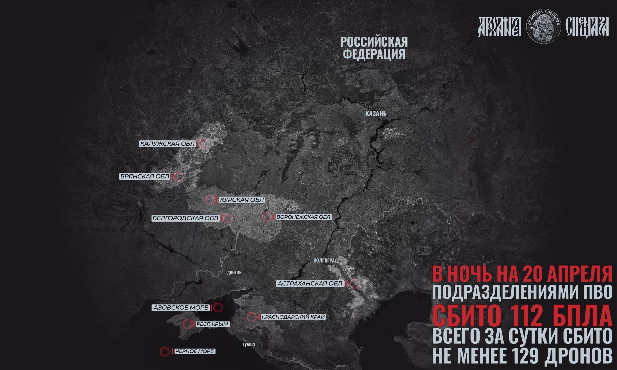 Всего подразделениями ПВО было сбито 112 беспилотников за эту ночь, и основная часть в Черноморской зоне. Единичные сбития были в приграничье, а также в Астраханской области.