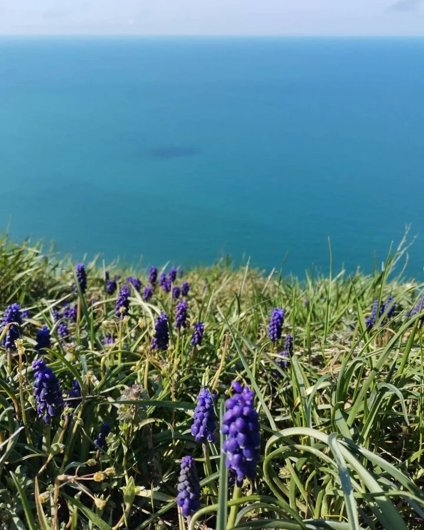 Тем не менее, цветки привлекают внимание своим ярким синим цветом. Особенно - на фоне моря.