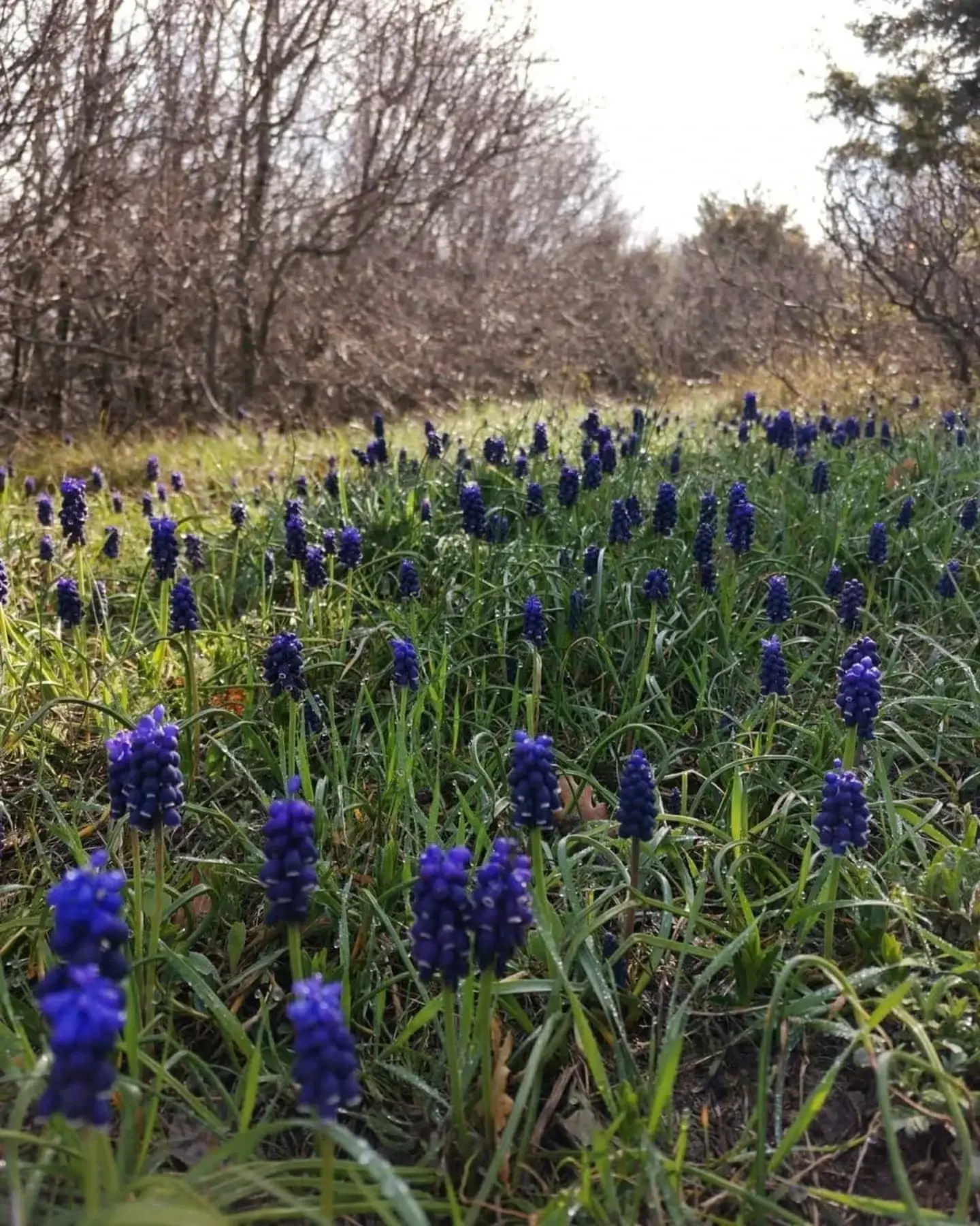 В Анапе расцвела мускария – мышиный гигант. По-другому его называют гадючий лук. Его прозвали так из-за того, что его часто встречали в местах обитания змей, а сами луковицы токсичны, что вызывает ассоциации с ядом. Также считается, что гадюки могут прятаться в зарослях этих цветов, или запах растения отпугивает их.