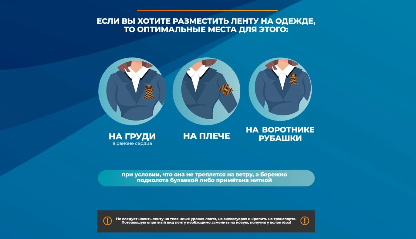 Информация о месте и времени раздачи символа воинской славы будет размещена на интерактивной карте. Переход на неё будет доступен на сайте георгиевскаяленточка.рф с 22 апреля.