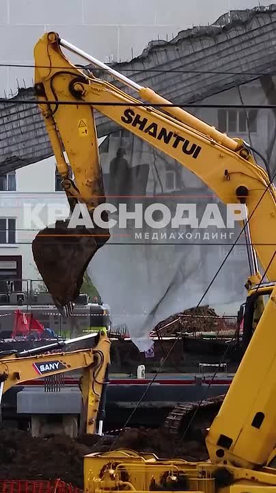 Все смешалось – пыль, экскаваторы, рабочие… Вот так рождается обновленное здание.