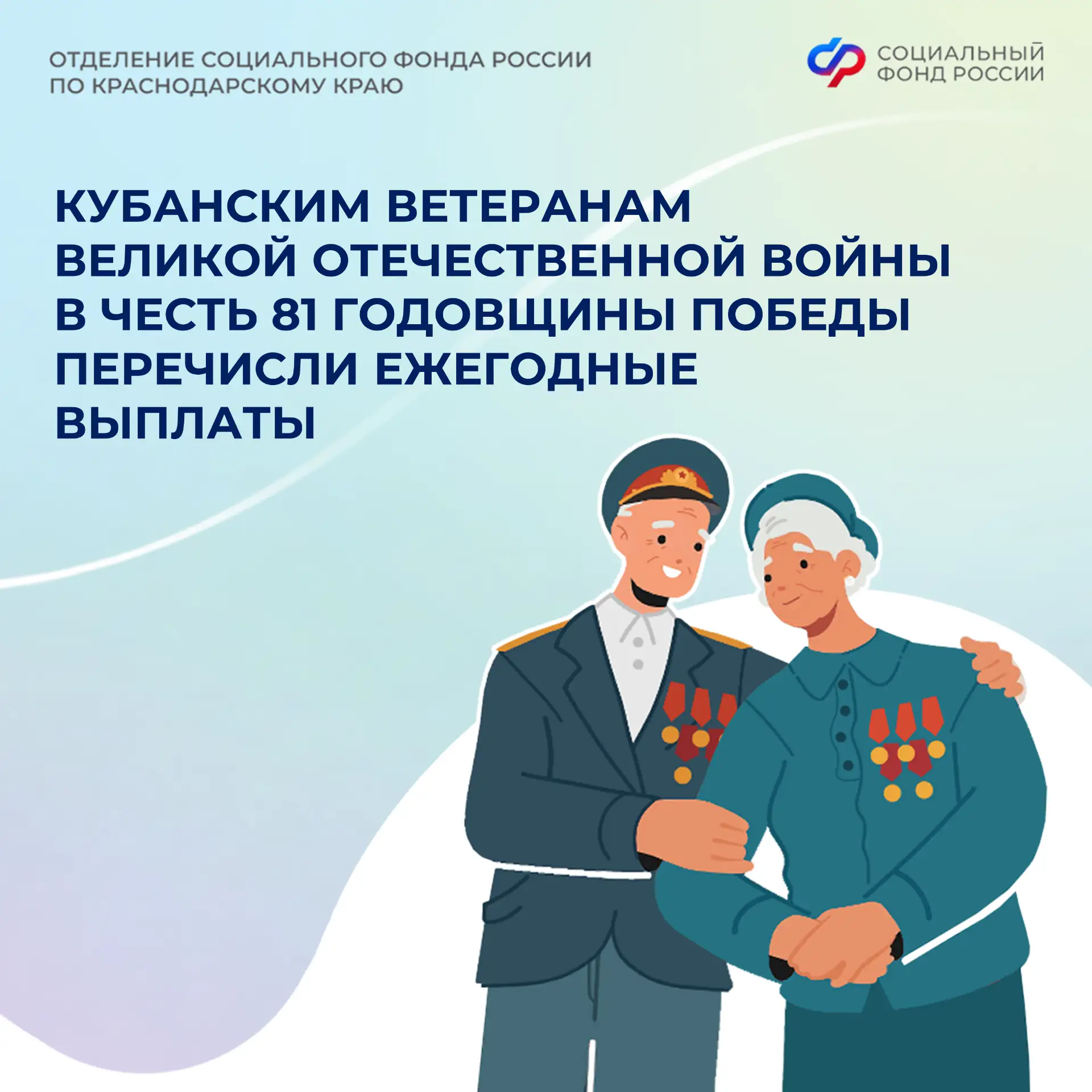 В честь Дня Победы Отделение Социального фонда России по Краснодарскому краю перечислило 175 ветеранам Великой Отечественной войны ежегодную выплату — 10 тысяч рублей. Средства уже выплачены вместе с апрельской пенсией — через банки или отделения почтовой связи.