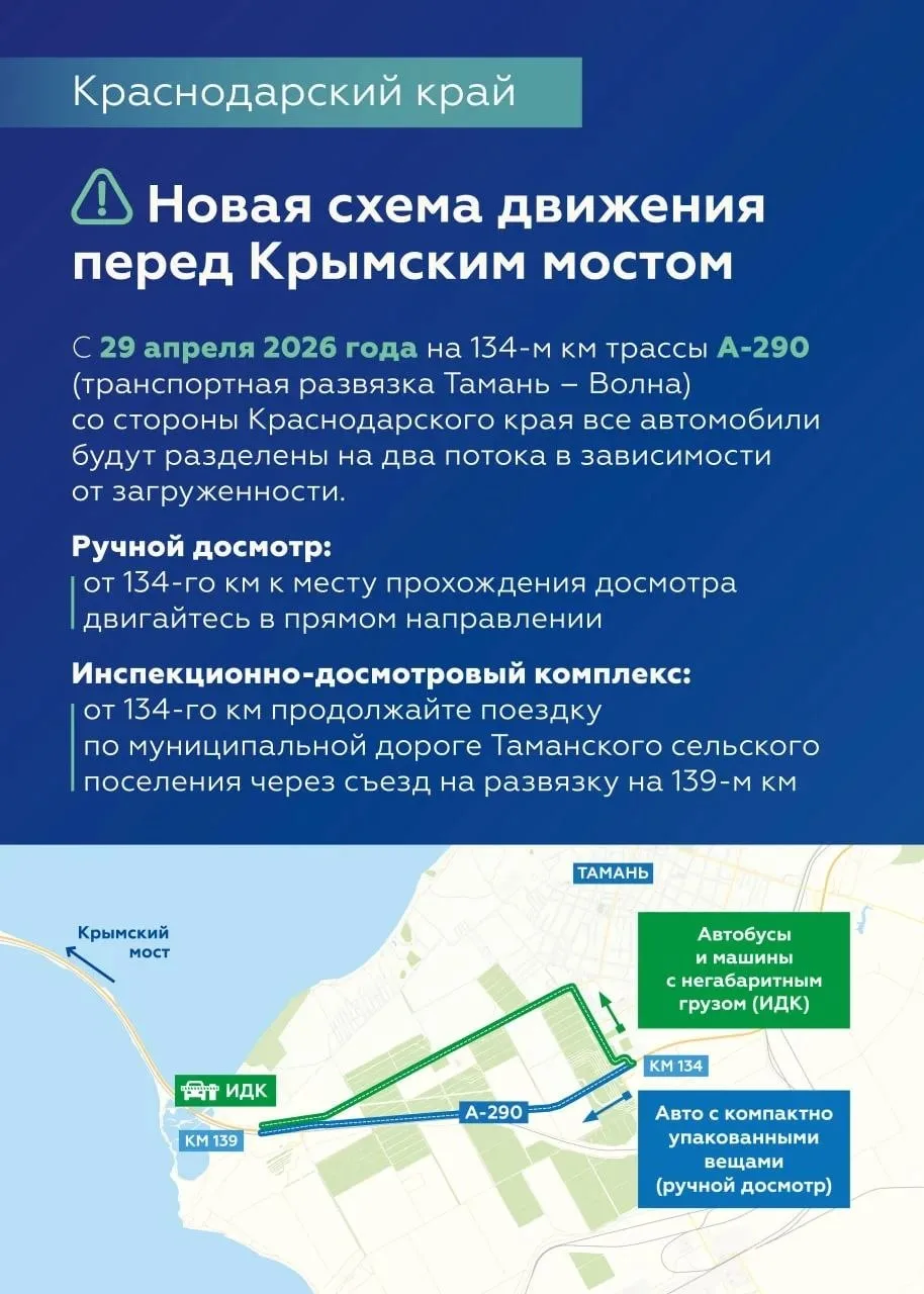Уже сегодня водителей на подъезде к Крымскому мосту ждут новые правила — привычная схема движения со стороны Краснодарского края изменилась, сообщили в Минтрансе Крыма.
