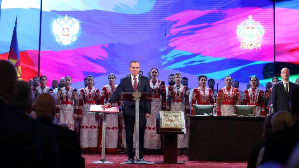 Избранный губернатор принес присягу на верность народу и Конституции Российской Федерации, Уставу Краснодарского края.Вениамин Кондратьев вступил в должность губернатора Краснодарского края в третий...