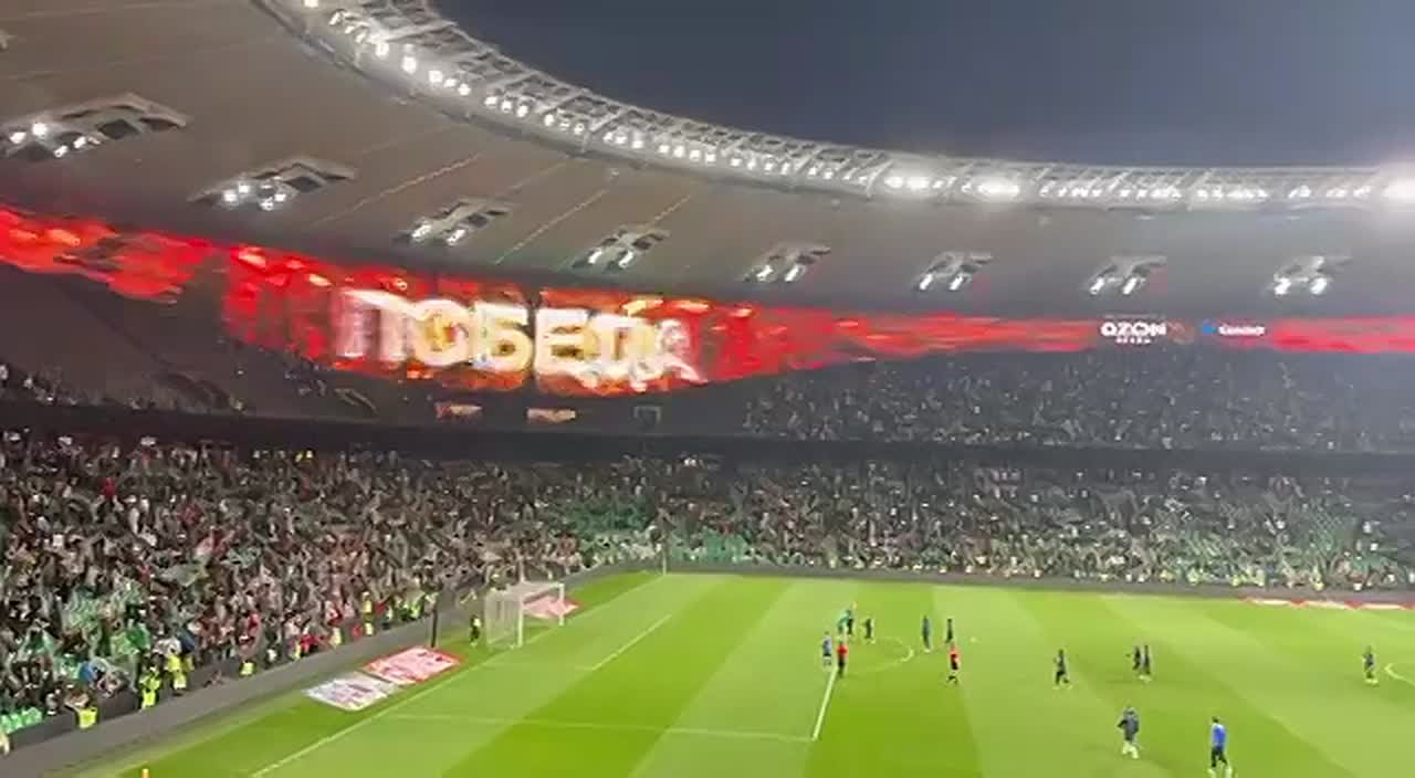 Непростой выдался матч с «Динамо». Шли с москвичами на равных. Всё решила серия пенальти (4:2)! И вот, на экранах стадиона заветная надпись: «Победа».
