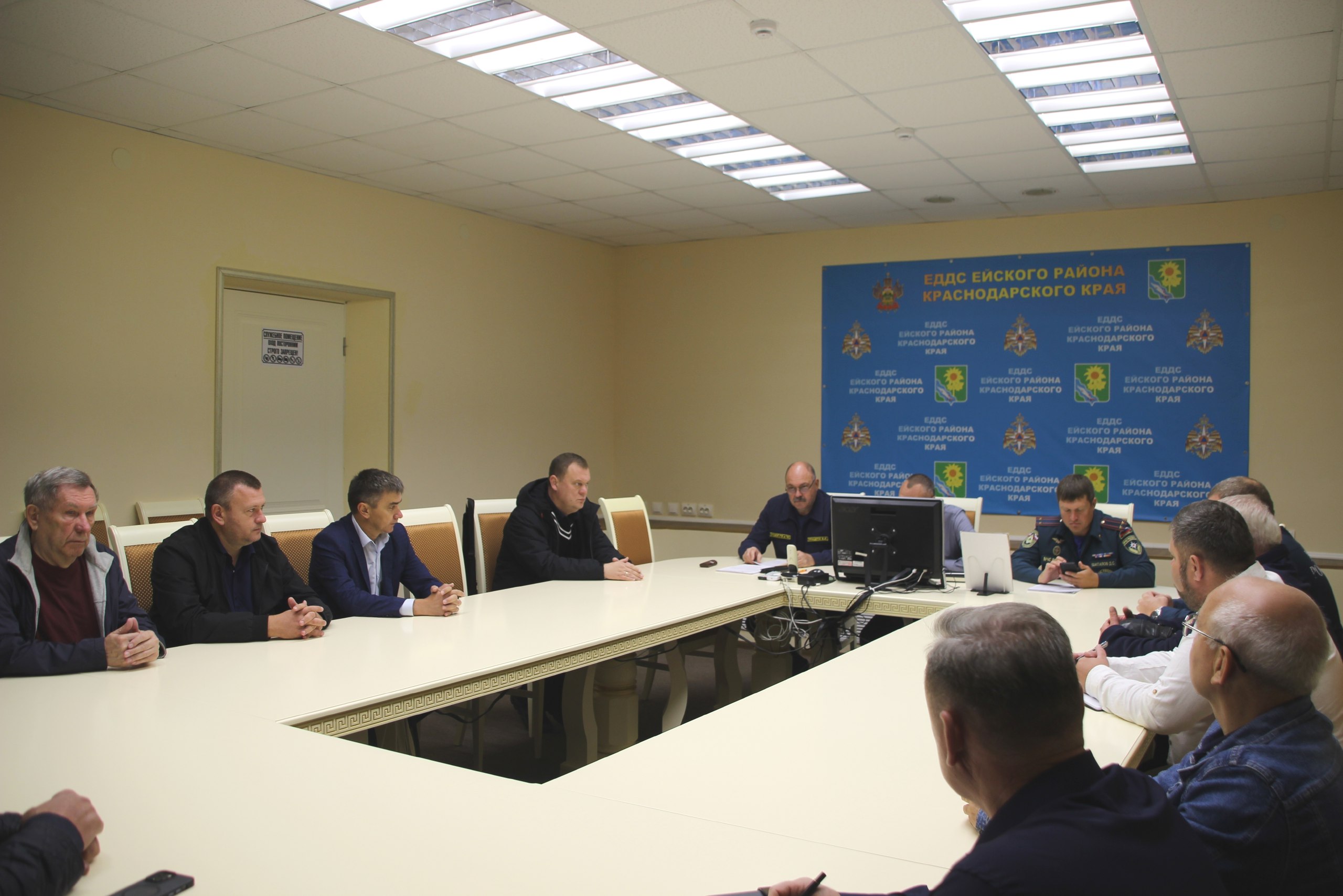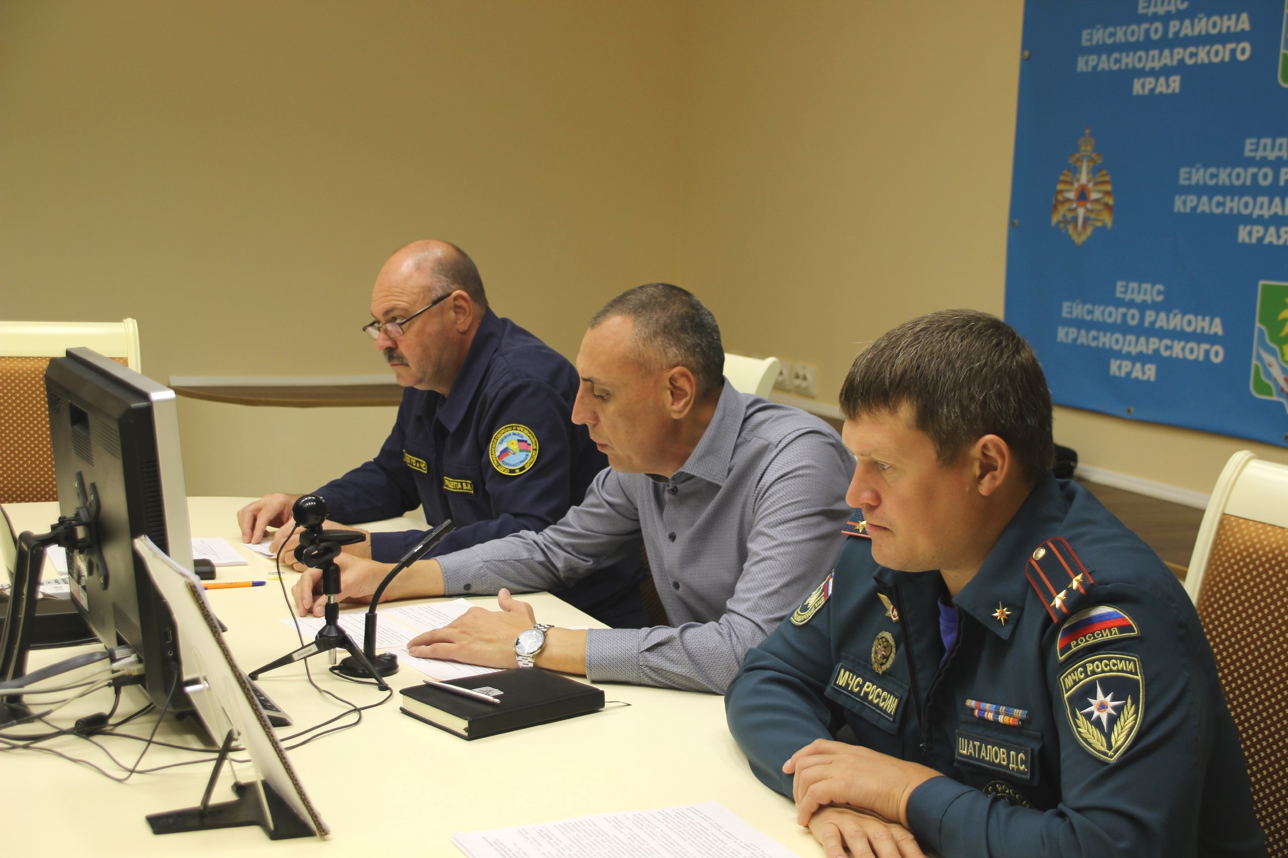 В Ейском районе старт штабной тренировке дал заместитель руководителя муниципалитета Андрей Филипьев. В 8 утра он провел совещание при участии начальника штаба руководства штабной тренировки, начальника отдела ГО и ЧС районной администрации Владимира Прищепы и заместителя начальника отдела надзорной деятельности и профилактической работы Ейского района Дмитрия Шаталова. На совещании были озвучены основные цели и задачи тренировки, определены мероприятия, которые будут отработаны с участием оперативных служб.