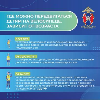 Госавтоинспекция напоминает, что, согласно ПДД РФ, движение велосипедистов и лиц, использующих для передвижения средства индивидуальной мобильности, не достигших возраста 14 лет должно осуществляться только по тротуарам, пешеходным, велосипедным и велопешеходным дорожкам, а также в пределах пешеходных зон.