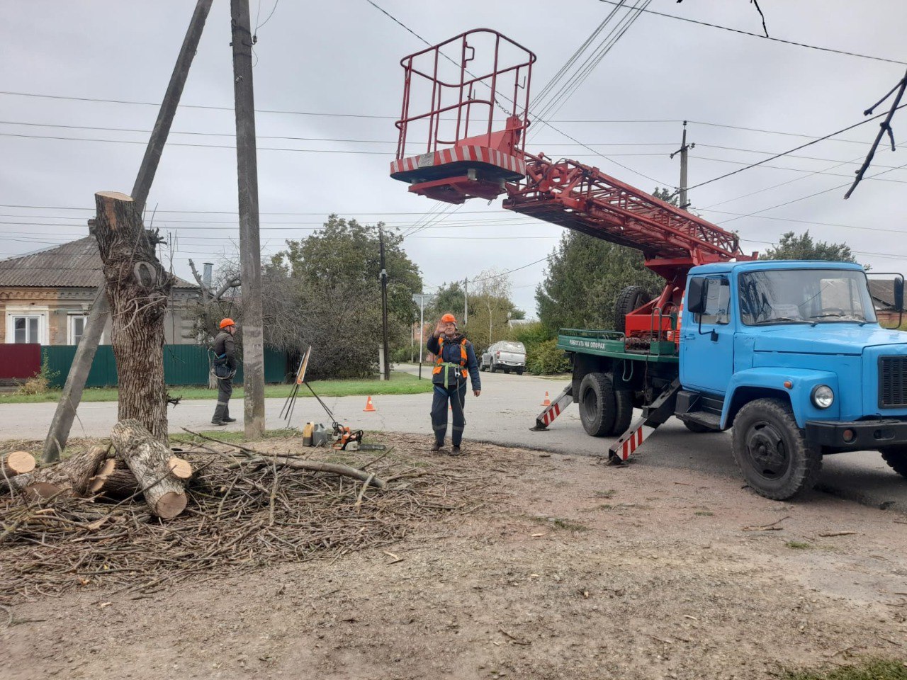 Спил аварийных деревьев в пос. Широчанка, ул. Ейская - ул. Чаленко