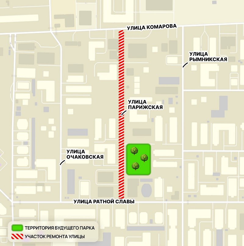 С 3 октября на улице Парижской, на участке от улицы Комарова до улицы Ратной Славы, стартуют работы по капитальному ремонту дорожного покрытия. Завершение проекта запланировано на 15 ноября 2025 года.