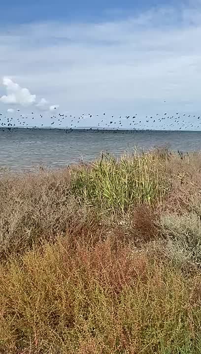 Вереницу летящих в Таманский залив птиц сняли на видео