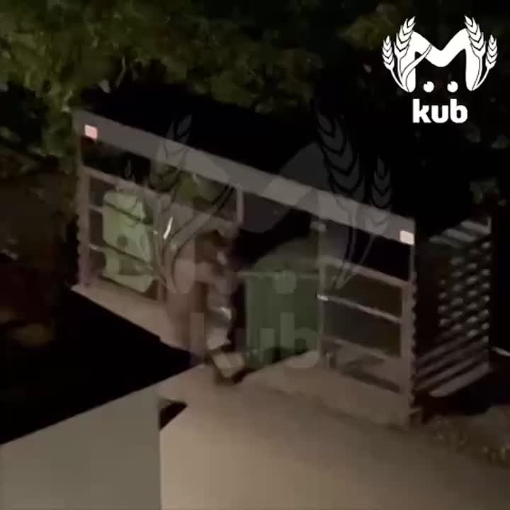Медведи продолжают кошмарить Красную Поляну своими рейдами: на это раз мохнатый бандит угнал мусорный контейнер. Оглядевшись по сторонам и убедившись, что за ним нет хвоста, миша покатил бак восвояси.