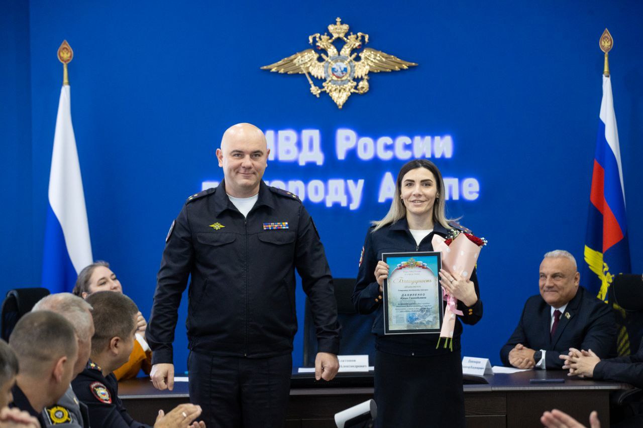 На торжественном мероприятии, посвященном грядущему профессиональному празднику, слова благодарности работникам службы адресовали временно исполняющая полномочия мэра Светлана Балаева, зампредседателя Совета Владимир Пономарев и начальник Отдела МВД России по городу Анапе Андрей Платонов.