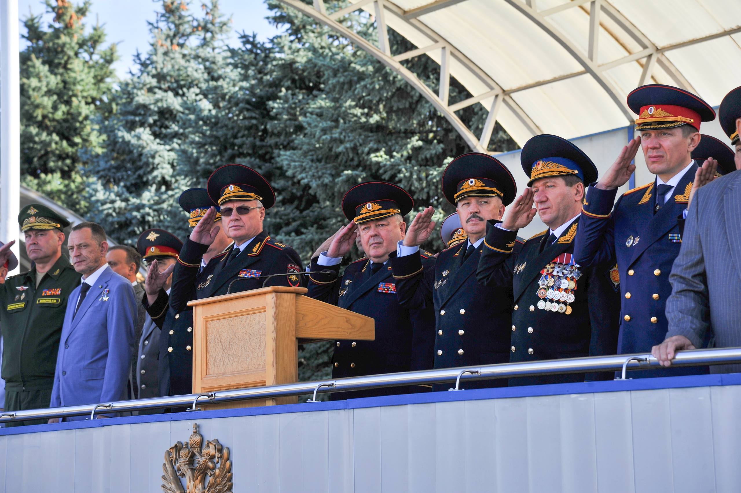 От имени Министра внутренних дел Российской Федерации генерала полиции Российской Федерации Владимира Колокольцева коллектив университета поздравил генерал-полковник полиции Сергей Бачурин:
