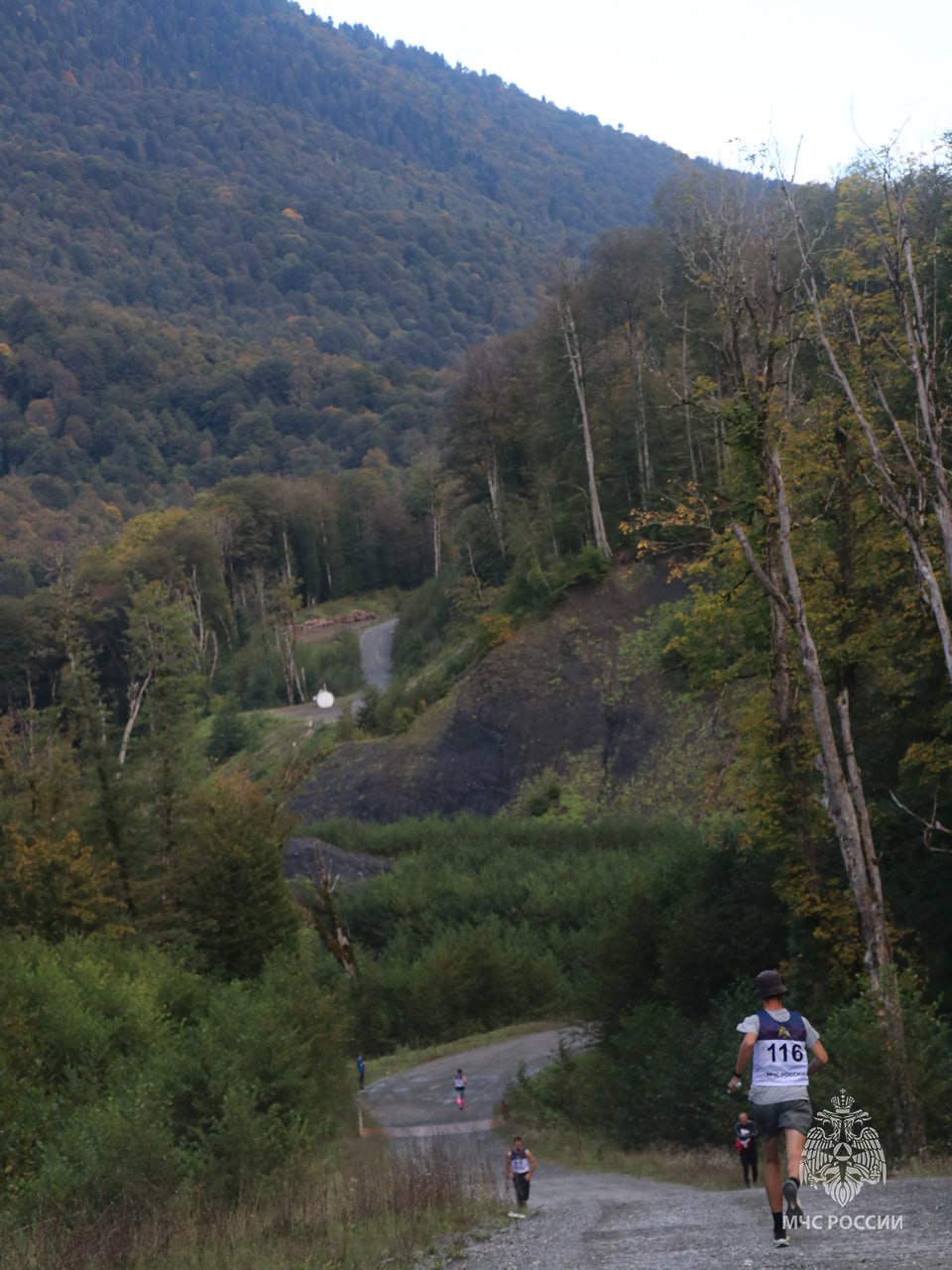 Глава МЧС России Александр Куренков наградил победителей дистанции «Кросс-эстафета 6 по 3 км» XX чемпионата МЧС России по многоборью спасателей. Дистанция проходила в горах Красной Поляны – от курорта «Роза Хутор» в сторону Энгельмановой поляны.